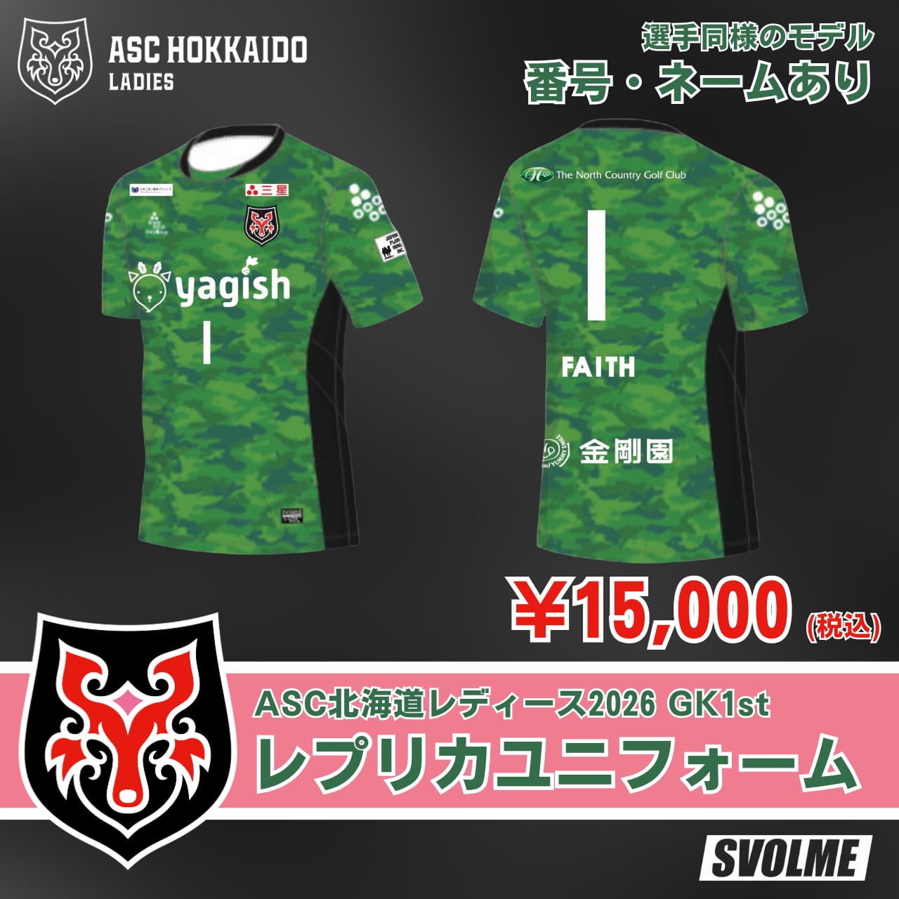 ASC北海道レディース2026シーズン1stゴールキーパーモデルのレプリカユニフォーム。