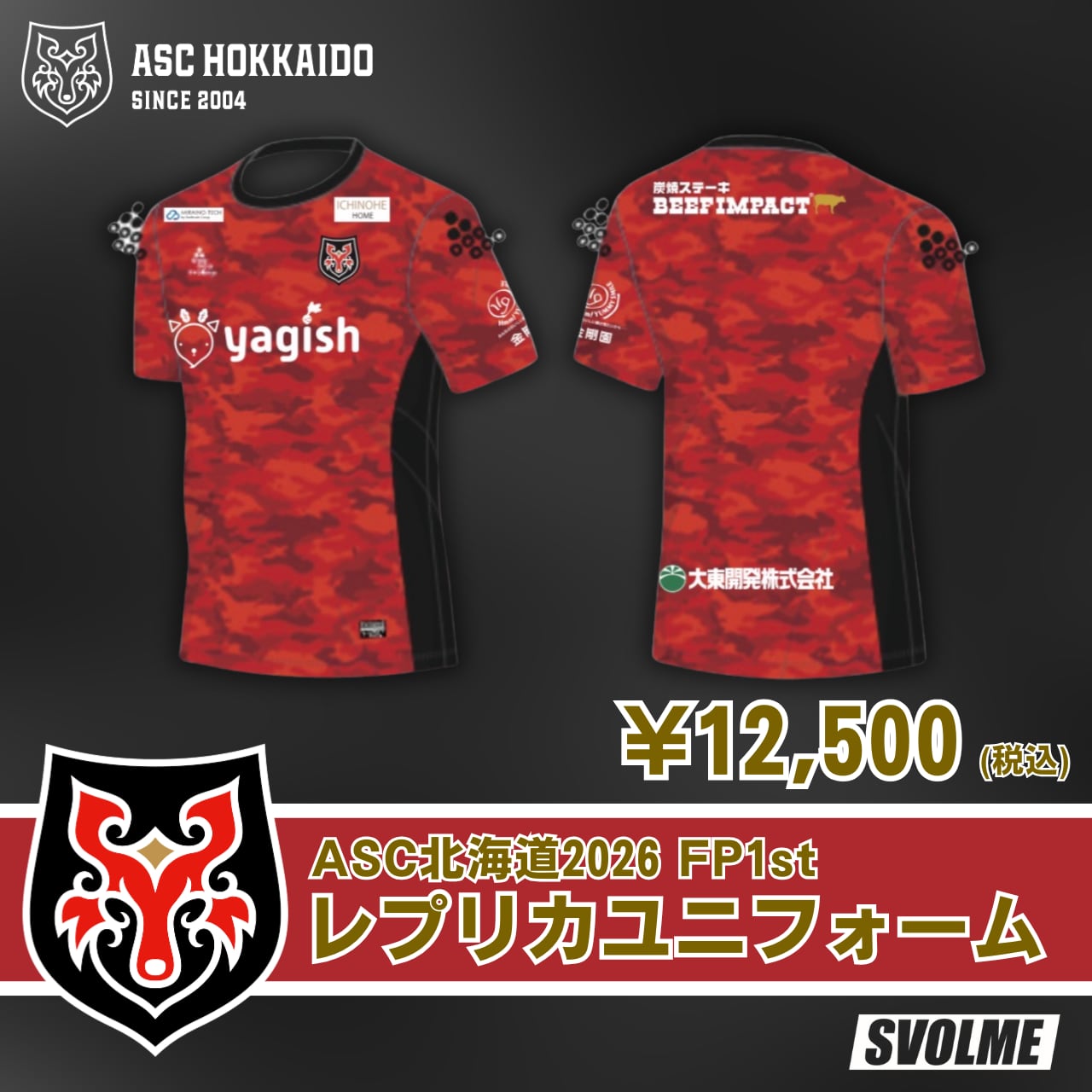 ASC北海道2026シーズン1stフィールドプレーヤーモデルのレプリカユニフォーム。